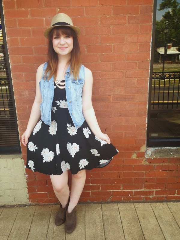 Ever since I was a little girl, I have always loved floral. Well, some things never change. And I'm glad they haven't since floral patterns are such a big hit right now! I swear it's the 90's all over again, which means mixing patterns like floral and stripes, for example, are very popular and one of my favorite patterns to wear together. I'm not mixing patterns in this post, but I am wearing my favorite go to look for summer. Cute, casual dress with my denim vest, hat, and booties. Can't go wrong with this look! I'm so glad I purchased